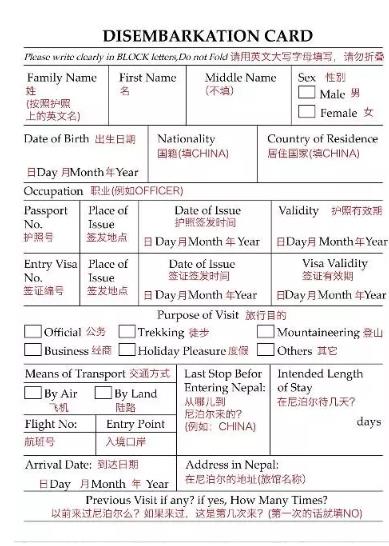 截止2017年2月,外国人出境印度时,不需要额外填写出境卡。