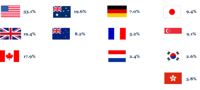 趋势三:美英加澳等英语系国家仍是受到中国学生青睐